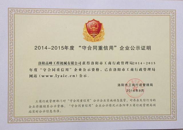 <<返回上一頁(yè) 2014-2015守合同重信用企業(yè)1 發(fā)布時(shí)間:2021-02-06點(diǎn)擊:1846 上一篇:洛陽(yáng)市科學(xué)進(jìn)步獎(jiǎng)證書(shū) 下一篇:2014-2015守合同重信用企業(yè)